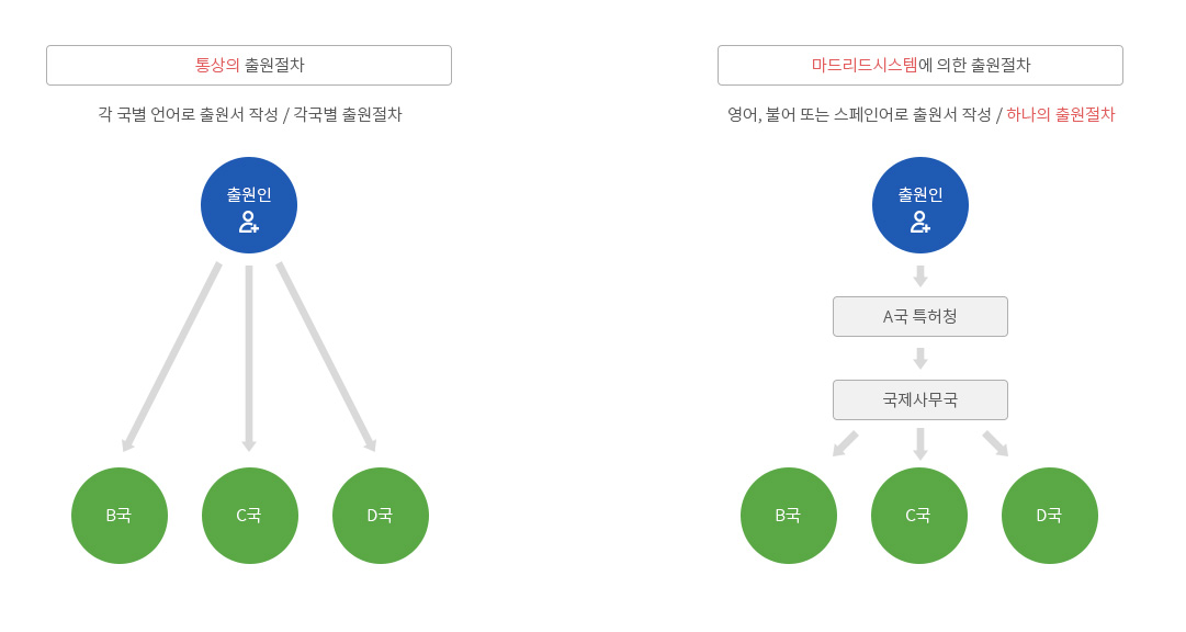 마드리드 의정서 체제에 의한 절차와 통상의 출원절차의 비교